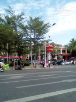 К отелю вообще никаких претензий! Все чистенько, красиво, люди дружелюбные. Завтраки такие - слов нет! Все вкусно, всего много. Блюда меняются каждые полчаса. Застали и жареную рыбу, и крылышки, как-то даже утиные головы подавали))) Муж с восторгом уплетал то, что прямо при нем готовил повар, я по достоинству оценила жареную лапшу типа вок. Вечером тут же пробовали шашлычки. Цена точно такая (рублей 50) же, как на улице, только жарят в перчатках и в цивильных условиях. На день всех влюбленных ходили в кафе Лена. Оставили полторы тысячи, отведали ракушек, лягушачьих лапок, свинину и баклажаны. Вкусно.Но дороговато, конечно!