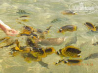3.3. Кормить рыб запрещено, но надсмотрщик за пляжем и охранник тоже люди и периодически отлучаются, посему - возьмите по булочке из столовой и принесите с собой, такого разнообразия рыб, что на Вас прям летят с радостью сложно представить. минимум 6-7 видов рыб будут крутиться у ног выпрашивая свой кусочек хлеба. Лично мы кормили прям из рук, но смотрите рыбу - попугая, у них очень твердый клюв и укусить может довольно сильно. Палец конечно не откусит, но прищимит хорошенько. Берите с собой видеокамеру, т.к. зрелище отличное и всегда будет приятно вспомнить сотню - другую рыб, что крутились вокруг Вас