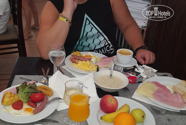 заехали шикарно: бронировали номер стандарт. А так как я сплю очень не спокойно, то обычно мы пытаемся бронировать в отелях 2-х комнатные номера. Так вот, на рецепшене просто ради интереса попросили что нибудь похожее подыскать. И без доплаты получили аппарты. Радости не было предела. Заезжали уже поздно, и нам был предложен поздний ужин (несколько листьев салата, пару оливок и хлеб). Думали - вот это мы "попали" с едой... А утром просто обалдели: давно не видели такого разнообразия блюд, фруктов и т.п. Вообщем за неделю набрали по паре лишних килограмм. В баре у бассейна очень приятное обслуживание, причем на родном языке... анимация вполне приличная, пару раз оставались посмотреть. Отель расположен в 3-х минутах приятной ходьбы от пляжа. Пляж песчаный, чистый. На пляже есть и душ, и бары... Отдельное спасибо продавцу магазина Армани при отеле: и развлечение и шопинг для жены... В целом мы давно не получали такого удовольствия от отдыха...