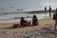 До моря идти 5 минут, очень близко. Пляж чистый, с зеленой зоной из пальм, которая отделяет пляж от дороги. На пляже мажьтесь кремами от загара, сгораешь даже при пасмурной погоде. Еще есть мошки, мажьтесь с первого дня какими нибудь защитными кремами от мошек иначе в последние дни вас ждет сюрприз, в виде укусов мошек на ногах и спине. Долго проходят и зудятся. На Дадунхае мошек нет.