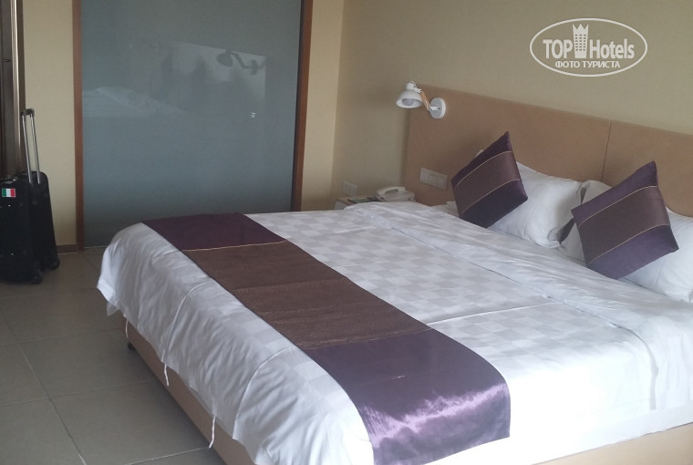 Доброе время суток! Отдыхали в этом отеле с 3 по 13 марта 2017г., летали от Тез Тура. Этот отель нам посоветовал туроператор, соблазнились на не высокую цену путевки. Прилетели утром в 10-00, таможню прошли и багаж получили быстро, от аэропорта до отеля ехать минут 10-15, так что в отеле были где то в начале 12-ти. Номеров свободных пока не было, сказали нужно подождать пару часов. Оставили багаж на ресепшне и пошли гулять. Территория отеля очень зеленая и чистая, море совсем рядом 5-7 минут вниз от отеля. Пока прогуливались, заселение уже шло полным ходом. Так что ключ от номера мы получили в 13-00, номер достался отличный, наверное после ремонта, мебель новая, все очень чисто. Жили в корпусе А1 на 7 этаже, номер 6709, балкон выходил на сад и бассейн. Уборку в номере делали каждый день, полотенца, разовые принадлежности докладавали постоянно. Постель меняли каждые 3 дня, хотя мы не просили. Дали дополнительные большие полотенца, что бы можно было брать их собой на пляж и лежать на них возле бассейна на траве, что мы и делали, так как лежаков на всех не хватает. Завтраки конечно отличаются от европейских, но это и понятно мы в юго-восточной Азии же. Всегда были яйца: жаренные, омлет, варенные, овощи свежие и тушенные, рис, национальные блюда в изобилии. Сосиски, колбаса или бекон были не всегда, но нам удавалось как то их вылавливать. Фрукты: ананас, арбуз, дыня за ними вечная битва, даже не пытались подходить к этому столу. Да и смысл вылавливать в жиже какие то куски, проще купить на улице или в магазине, все очень свежее и вкусное. Цены на фрукты в среднем от 10 до 30 юаней за 0,5 кг (там везде цены за пол кг. указывают). Иногда на завтраках не хватала вилок, мы брали с собой складную вилку в карман, пару раз воспользовались ей. Как и писали в других отзывах: есть один минус - это большая стройка сразу за отелем. Да, забивают они сваи действительно с 7-00 утра до 19-00. Перерыв днем где-то с 13-15. Нас это не напрягало, на ночь вставляли бируши и даже когда они начинали долбить не было слышно. По поводу питания: голодными не останетесь, кафешки кругом, меню разнообразное цены то же. Многие пишут про ресторан "Лена", не ходили туда. Под этим рестораном есть вход в подвальчик, там такое изобилие всякой вкусноты и цены приятно удивляют, что не маловажное - очень много китайцев там питаются. Мы вообще старались питаться, там где местные кушают. По поводу экскурсий, мы их не брали, ездили везде сами это интересней и на много дешевле. Что бы уехать в город Санья, от ближайшей остановке нужно сесть на 8 или 25 автобус, проезд на 1 чел. 3 юани. Что бы съездить в парк "Олень повернул голову", нужно сесть на 26 автобус проезд 4 юани, парк очень красивый, много панорамных площадок, можно сделать очень красивые фото. Попросите отельных гидов написать вам на китайском название того места, куда вы хотите поехать, покажите водителю в автобусе и все. Пару слов про автобусы и транспорт в целом. Все городские автобусы с кондиционерами и очень чистые, движение безумное, все постоянно сигналят, едут как хотят, пешеходов не пропускают, будьте к этому готовы!!! Еще все жалуются, что на море кусает песчаная мошка, нас это миновало. Просто заранее у себя в городе купили дешевое средство "Рефтамид", по брызгались на пляже и все. Ну если вдруг укусила, нужно намазаться, уже в номере средством "Незулин", продается в России в любой апте