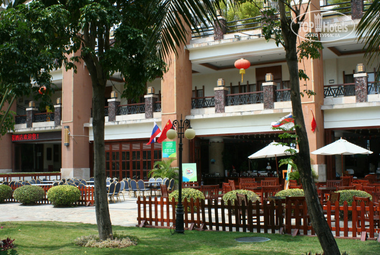 Доброе время суток! Отдыхали в этом отеле с 3 по 13 марта 2017г., летали от Тез Тура. Этот отель нам посоветовал туроператор, соблазнились на не высокую цену путевки. Прилетели утром в 10-00, таможню прошли и багаж получили быстро, от аэропорта до отеля ехать минут 10-15, так что в отеле были где то в начале 12-ти. Номеров свободных пока не было, сказали нужно подождать пару часов. Оставили багаж на ресепшне и пошли гулять. Территория отеля очень зеленая и чистая, море совсем рядом 5-7 минут вниз от отеля. Пока прогуливались, заселение уже шло полным ходом. Так что ключ от номера мы получили в 13-00, номер достался отличный, наверное после ремонта, мебель новая, все очень чисто. Жили в корпусе А1 на 7 этаже, номер 6709, балкон выходил на сад и бассейн. Уборку в номере делали каждый день, полотенца, разовые принадлежности докладавали постоянно. Постель меняли каждые 3 дня, хотя мы не просили. Дали дополнительные большие полотенца, что бы можно было брать их собой на пляж и лежать на них возле бассейна на траве, что мы и делали, так как лежаков на всех не хватает. Завтраки конечно отличаются от европейских, но это и понятно мы в юго-восточной Азии же. Всегда были яйца: жаренные, омлет, варенные, овощи свежие и тушенные, рис, национальные блюда в изобилии. Сосиски, колбаса или бекон были не всегда, но нам удавалось как то их вылавливать. Фрукты: ананас, арбуз, дыня за ними вечная битва, даже не пытались подходить к этому столу. Да и смысл вылавливать в жиже какие то куски, проще купить на улице или в магазине, все очень свежее и вкусное. Цены на фрукты в среднем от 10 до 30 юаней за 0,5 кг (там везде цены за пол кг. указывают). Иногда на завтраках не хватала вилок, мы брали с собой складную вилку в карман, пару раз воспользовались ей. Как и писали в других отзывах: есть один минус - это большая стройка сразу за отелем. Да, забивают они сваи действительно с 7-00 утра до 19-00. Перерыв днем где-то с 13-15. Нас это не напрягало, на ночь вставляли бируши и даже когда они начинали долбить не было слышно. По поводу питания: голодными не останетесь, кафешки кругом, меню разнообразное цены то же. Многие пишут про ресторан "Лена", не ходили туда. Под этим рестораном есть вход в подвальчик, там такое изобилие всякой вкусноты и цены приятно удивляют, что не маловажное - очень много китайцев там питаются. Мы вообще старались питаться, там где местные кушают. По поводу экскурсий, мы их не брали, ездили везде сами это интересней и на много дешевле. Что бы уехать в город Санья, от ближайшей остановке нужно сесть на 8 или 25 автобус, проезд на 1 чел. 3 юани. Что бы съездить в парк "Олень повернул голову", нужно сесть на 26 автобус проезд 4 юани, парк очень красивый, много панорамных площадок, можно сделать очень красивые фото. Попросите отельных гидов написать вам на китайском название того места, куда вы хотите поехать, покажите водителю в автобусе и все. Пару слов про автобусы и транспорт в целом. Все городские автобусы с кондиционерами и очень чистые, движение безумное, все постоянно сигналят, едут как хотят, пешеходов не пропускают, будьте к этому готовы!!! Еще все жалуются, что на море кусает песчаная мошка, нас это миновало. Просто заранее у себя в городе купили дешевое средство (удалено модератором), по брызгались на пляже и все. Ну если вдруг укусила, нужно намазаться, уже в номере средством (удалено модератором), продае