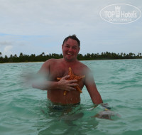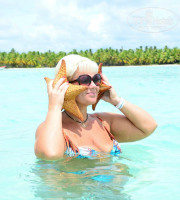 Т.к. мы ни первый раз в Доминикане, посетили только одну экскурсию Саона классик 99 $ на чел., брали от нашего гида. Остались недовольны, т.к. обещали шикарный пляж, а в результате уйма народа, лежаки как в кинотеатре, да ещё и дождь сильный пошёл.Около часа просидели под навесом(( Правда искупаться в Карибском море успели- замечательно! И пофотографироваться тоже успели, хотя на пляже нашего отеля, фото нисколько не хуже. Всего были на острове 3 часа. И опять огромное впечатление произвёл натуральный бассейн в Карибском море, где ловили и фотографировались с морскими звёздами. Муж взял с собой маску и трубку, нашёл 5 звёзд разной величины и цвета- это что-то! Нафоткались в своё удовольствие! )) и другим дали ))