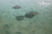 И не так радужно дела обстоят с домашним рифом. В основном это только серые рыбки у берега. Но можно увидеть и черепах напротив 615 номера (мы так и не решились доплыть до них), а также скатов и рифовых акул во время кормления в 19:00 возле главного ресторана. Отель это не отрицает и поэтому каждый день в 10:00 и в 16:00 организует бесплатные вылазки на снорклинг с профессиональным ныряльщиком.