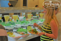 Обеды, ужины: многое как на завтрак, спагетти, рис, капуста брокколи, брюссельская, салаты из капусты, моркови, томатов, огурцов, зелени, кукурузы, так же всё раздельно было. Мясо: цыпленок, курица (сыровата), индейка. Рыба вкусная та, которую тут же жарят. Пироженых просто море, но все однообразные, бисквитные. Восточных сладостей не было( Фрукты: апельсины, яблоки, груши, грейпфруты. Напитки: чай, кофе (не вкусное), соки в автоматах (часто не было) и в бочках апельсиновый и вишневый (юпи), вино красное, белое (не очень конечно вкусное, но пить можно)