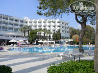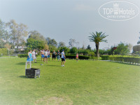 Территория отеля: достаточно большая. Первое, что вызовет вопрос, где брать пляжные полотенца. Выходите из главных дверей отеля, сразу поварачиваете направо и спускаетесь вниз по лестнице. Там будет магазин одежды, проходите его повернув налево, видите сцену, обогнув ее по провую сторону будет хаммам (дорогой, только пиллинг 30 дол), именно там в обмен на карточку вам дадут полотенце. На территории есть открытый бассейн: большой и маленький. Вода была холодная. Плавали там только мужчины и то редко. У бассейна стоят шезлонги, зонты, столы. Днем достаточно многолюдно у бассейна, солнечно, безветренно и приятная музыка. Под терассой, рядом с бассейном есть стол для настольного тенниса, обычно там кто-то играл. За бассейной есть большая лужайка, где проходит аэробика и играют в боччу. Вокруг нее тропинка, парочка беседок, бар (пока не работает), маленькая площадка с батутом для детей. Рядом водные горки (не работали) Имеется прямой проход с территории на алеею к морю, но он был закрыт. На территории отеля много кошек. Тут уже субъективное мнение. Я их очень люблю и угостить мяском для меня в радость) В целом, если их не звать, они и не подойдут. Поэтому проблем с этим не вижу. Кошки в турецких отелях, кафешках и на улице првычное дело.