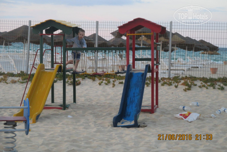 Размещали нас полдня, не важно было, что мы с маленькими детьми, дети умаялись вообще, считай день заезда пропал! Заселили в такой ужасный номер на цокольном этаже (проводили нас туда за 1$, по дороге нам попались вполне себе живые тараканы), в номере был такой же местный житель и не было холодной воды))) Схватили чемик и бегом на рецепшен с кучей возмущений, на что нам предложили номер с Удобствами на 3 этаже за 50$. Там уже было довольно прилично, НО холодильник не работал, кондиционер у нас да, у подруги нет (на протяжении всего отдыха делали заявки на починку приборов, но увы...), один большой плюс - это кровати и чудо матрас, спали как дома! Шоу программа начинается поздно, мы уходили на полпрограммы с ребенком спать, слышимость в номере почти как на улице, засыпали под музыку). Питание - было ничего, простенько, ничего особенного, на полдник было мороженное, выпечки мало. Отель - аквапарк, но не только для гостей, еще и для местного населения, бассейны грязные - вся очистка, это ведро хлорки раз в три дня. {удалено модератором; информация о третьих лицах}. Море грязное, постоянно штормило, лежаки старые, матрасов не хватало(грязные). И еще, в отеле очень развито воровство, даже из сейфов на рецепшене. Впечатления остались не из лучших!