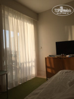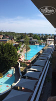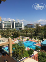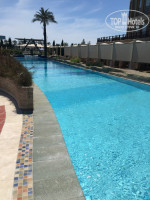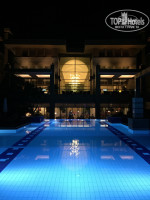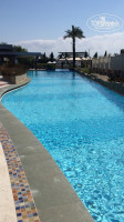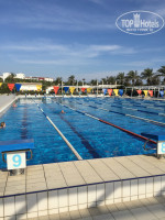Народу в это время было совсем небольшое количество и в основном-это немцы.По моим наблюдениям работали 2 корпуса- 4 (ближе к морю) и 3 (ближе к ресепшн). В самом отеле очень приятно, все чисто и все блестит. Выход на внутреннюю территорию расположен в лобби- по лестнице вниз от холла,также внизу слева расположены бар, СПА ( где выдают и принимают полотенца),тренажерный зал, мини клуб,закрытый (но не подогреваемый?) бассейн, кабинет врача и зона с бильярдным столом, мини-футболом, столом для пинг понга и диванами с креслами.Справа от лестницы магазинчик, рестораны Аля Карт, туалетная комната, главный ресторан.Около самого здания отеля бассейны без подогрева.Зона с водными горками и уличным мини клубом не функционировала. Ближе к морю есть подогреваемый большой олимпийский бассейн длинной 50 м и 9 дорожками, глубина 2.40 м везде.Вода в нем очень комфортной температуры. На стенде имеются предупреждения,что дети до 14 лет не допускаются к пользованию бассейном, но так как альтернативы в середине апреля покупаться где-либо еще детям нет, то дети плавали в нем.Вся территория покрыта газоном,очень много различных цветочков и кустиков,глаза радовались каждым мелочам.Цветет мимоза... Очень все красиво и зелено.За территорией отеля,вдоль побережья имеется длинный променад.