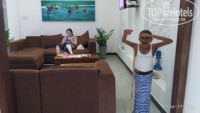В отель попали случайно, в Ланке Суперкоралл куда приехали от Натали Турс, не было мест( За хорошие бонусы нам предложили пожить 2 ночи в Севене. В отеле нас угостили соком и сразу заселили на 3 этаж. Со всех номеров вид с балкона на океан. Номер просторный, свежий ремонт, чистая плитка и половинки. Чайник и чашки, чай, кофе, шампунь, гель, крем и шапочки. Очень белые полотенца и белье. Одна широкая кровать и одна простыня.Телевизор с 133 каналами, ни одного на русском. Очень приятная плитка в ванной с листьями и бабочками. В номере очень тихо, пластиковые стеклопакеты. Кондиционер напротив кровати, лопасти регулируются вручную. Холодильника не было. Мы не спрашивали. Бассейн небольшой, 4 лежака и никого нет. Завтраки подают индивидуально. Если бы нам предложили остаться, мы бы с радостью согласились.