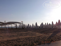 Поскольку, отдыхали мы в начале сезона, лежаков на пляже и у бассейна было в избытке. На пляже бесплатно матрасы, лежаки, пляжные полотенца брали в отеле, где сауна и хамам, тоже бесплатные. Мы пару раз туда сходили, не оценили: много немцев, которые не выдерживают наши температуры, и жалуются, что дышать нечем. Крытый бассейн холодный. Теплый был только Олимпийский, с 10 дорожками, длиной 50 м, глубиной 2,4 м. Все купались там. Были немногочисленные туристы, купавшиеся в море, но море холодное. Наш мелкий забегал в море каждый день по нескольку раз, но быстро отогревался на песке, так что ни соплей, ни кашля у нас не было, адаптации, кстати, тоже. По пляжу гуляют собаки, но не злобные. Лучше бы без них, конечно. На пляже есть детская площадка с горкой, лазилками, качельками. Так же на пляже есть чистые раздевалки, душ, душ для ног и туалет, в том числе, для инвалидов. Да и вообще, везде пандусы, лифты. Мы везде были с коляской, везде проезжали без проблем. Пляж грязноватый, на мой взгляд. Окурков и бутылок там, конечно, не валяется, поскольку везде пепельницы и мусорницы, и не только на пляже, но веток и старого пенопласта в песке очень много, мой мелкий вечно в этом во всем ковырялся, выкапывая палочки и камешки из песка.