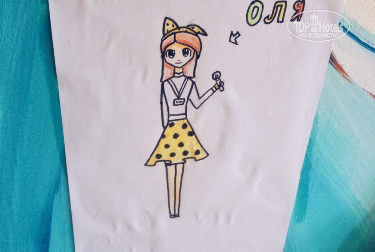 Анимация работает с утра и до ночи) С детьми играют в мини клубе и устраивают мини-диско по вечерам. Нашего ребенка научли рисовать славную девочку анимашку и теперь сидит дома, скучает за мини-клубом, рисует ее и подписывает - Оля ) Олечка, спасибо тебе!) Спасибо всем ребятам и девочкам за создание праздничного настроения на отдыхе!