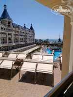 Пляж: благоустроен, привозной песок, есть понтон, с которого можно в воду спускаться, так как при заходе каменисто. Но люди с детьми все равно купались. На пляже и бассейн с горками.