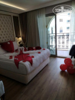 Номер 2203: эконом номер для двоих вполне просторный. Фото с сайта соответствуют действительности. Было две кровати (двуспальная и односпальная), так что с ребенком вполне тоже места хватит, балкон со столиком и стульями, холодильник с газировкой, водой и пивом, пополняемый ежедневно бесплатно, сейф бесплатный, халатов нет, тапочки есть, телевизор (есть несколько русских каналов). В санузле просторная душевая, с водой проблем не было, предоставляются все мыльно-брильные (мыло, гель для душа, шампуни, кондиционер, зубная паста, щетки, бритва и гель). Что происходит в соседних номерах не слышно, с коридора только если возле номера проходят разговаривая. Но номер находится на 2 этаже над баром в лобби, поэтому вечерние песни-пляски все очень хорошо слышны, даже при закрытом балконе. Но они заканчиваются примерно в 23-23:30. Если с детьми, то будет шумновато. Но если позже ложитесь, то норм.
