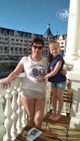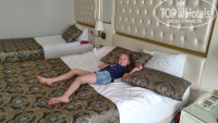 Туристов в отеле много (русские, немцы, арабы (из Палестины), турки). Больше всего русских. Персонал говорит по русски. Отель, как уже писали ранее, новый и очень красивый. Номера шикарные) Хорошая мебель, ортопедические матрасы на кроватях, плазменный телевизор, много зеркал. Везде подсветка и небольшие настенные светильники,, можно регулировать освещение в нескольких режимах. Много розеток, есть куда поставить на зарядку телефоны/планшеты и еще и включить плойку и т.п. Возле изголовья кровати кнопки вызова горничной, техника, включения режима "не беспокоить". В тамбуре большой платяной шкаф, также с зеркалом. В нем электронный сейф, много полок, большая ниша с плечиками, лежат тапочки, набор для шитья (нитки, иголки), щетка для обуви. В номере электрочайник и кофе/чай в пакетиках. Стеклянные и бумажные стаканчики. Окно - современный стеклопакет. Шума с улицы ночью не слышали. Сплит система установлена, не пользовались. Минибар в номере пополняли регулярно (соки в пакетиках, минералка, вода без газа, фанта, пиво), правда все присутствовало в двух экземплярах, хотя нас было трое). По приезду в минибаре обнаружили даже бутылку вина) В ванной комнате шкатулка с туалетными принадлежностями (шампуни, гели для душа, крема для тела, шапочки для душа, расчески, ватные палочки, зубные щетки и пасты). Попросила у горничной мочалку (сказала - дай кёсе, абла). Принесла две) Сантехника новая, все работает отлично. Только напор воды в душе приноравливались регулировать пару дней) Либо холодная, либо горячая. Надо ждать. Такое ощущение, что команда регулировки уходит в некий бойлер в другом конце отеля, и потом от этого бойлера возвращается обратно) Уборка в номере хорошая, поля мыли, белье меняли. Полотенца меняли каждый день. Балкон у нас в номере был большой и открытый (в отеле разные балконы, такая архитектура, есть маленькие закрытые с двух сторон балкончики), с видом на море и главный бассейн.
