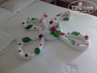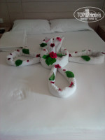 Отель хороший в отзывах все правда, тихий семейный немецкий отель - но многие из персонала говорят на русском - по крайней мере понимают. Может он и хороший потому что ориентирован на немцев - всё чисто, еда достойная, обслуживание хорошее. Развлечения как везде, анимация очень не навязчивая - есть и гимнастика с утра, фитнесс, дартц, волейбол и боча, Территория маленькая уютная, музыки кроме шоу вечером нет. Аквапарк 3 горки, из фруктов яблоки, киви,груши, арбузы, клубника по вечерам. Очень душевный портье - Кеша и с номером нам помог, когда хотели обменять на другой и с чемоданами когда уезжали. В основной ресторан на ужин лучше приходить пораньше - клубнику разбирали в начале и потом её уже не было, очень приятно сидеть на веранде - поднявшись по лестнице - можно любоваться видами, народу там обычно мало. Сейф в номере платный с ключом - мы его не брали.