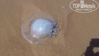 Еще при входе в отель неприятно удивил запах канализации, потом все стало ясно. В непосредственной близости протекает очаровательная зеленая речка. В ней действительно живут черепахи размерами от совсем крошечных до огромных, кормили их каждое утро. А еще в нее утром (а может и в другое время) все отели сливают свои воды. Может и очищенные, но запах-то специфический откуда? Именно этот аромат и овевал (особенно по утрам и вечерам) всю территорию отеля. И вот эта речка втекает в море, где находится и пляж трех отелей линии Seher. Уважаемые, пусть хоть кто со мной попытается поспорить – пахнет канализацией на море и еще как!!!! Самое главное разочарование я испытала именно от моря. Вы и Ваш ребенок не умеете плавать? Вам в этот отель! Посмотрите на фото – у меня ребенок ростом 120 см доходит до буйков и все еще стоит ногами на дне. Береговую линию никто не чистит. Зрелище разлагающихся под солнцем по 5 дней медуз, веток-палок, остаток водорослей, пластиковых стаканчиков, пакетов и прочей грязи глаз-то не радует ну вообще никак!!! Только на 6 день приехал трактор и все прибрали.