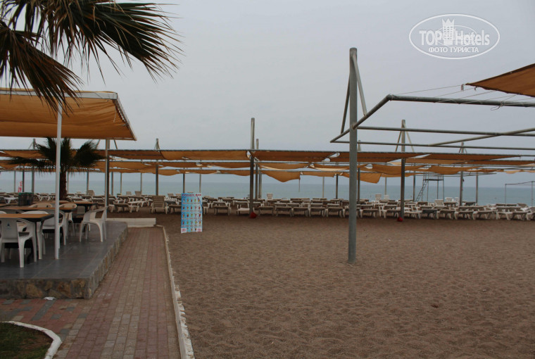 Пляж находится от отеля метрах в 300-500. Смотря в каком корпусе вас поселят. Нам доставляло только удовольствие до него пройтись. Лежаки утром не занимали, приходили после завтрака и всегда могли найти места для троих человек. Можно под навесом, можно и на солнце. На пляже есть бар, работает с 10 утра. Пекут турецкие лепешки. Можно купить коктейли и фрукты в витаминном баре. Есть души, и кабинки для переодевания. Есть туалеты.