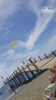 Пляж шикарный)Шезлонги удобные и чистые всегда)На пляже навесы специальные,что тоже удобно очень))Все сделано с умом)На пляже работает бар где можно покушать и выпить)Пицца очень вкусная)Так же на пляже находится амфитеатр,где вечером проводят развлекательные программы(но об этом отдельно)Есть бассейн с горками,что тоже очень понравилось)