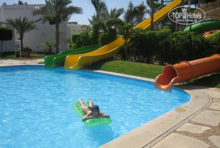 Всем привет! Были с подругой в этом отеле и нам очень понравилось! отдых был незабываемый!! Территория большая, можно прогуляться, 2 бара и они возле бассейнов, горки просто супер!Жаль что они работают не весь день.. в обед у них есть перерыв:)Лежаков хватает. Персонал очень доброжелательные.. Все, кто шел навстречу говорили доброе утро! Было очень приятно! На лице всегда улыбка!Бармэны нежадные, наливали так наливали!!)) Номер чистенький, оформлен в египетском стиле..Мебель не новая,но в отеле находиться не пришлось!)