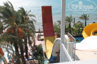 Long Beach Resort Hotel & Spa. Отдыхали в октябре 2016 года. Прибыли в отель рано утром, нам предложили заселение в номер на виллу, естественно согласились, получив красные браслеты. Вышло замечательно: наша семья направо номер, семья друзей налево, своя терраса, лежаки, бассейн, ресторан, бар- красота)) сразу же сходили покушали и опробовали бар. Территория большая, ухоженная и красивая, за весь отпуск так и не обошли её всю! Порадовал красивый переход к морю, бассейнов много, прикольный бассейн с водопадом подогреваемый. Пляж уютный хороший, но заход в море конечно не очень, такие валуны) но зато можно вдоволь попрыгать с пирса, чем собственно часто и пользовались, здесь конечно зачёт, пирс прикольный! Ходили на пирс справа, весело поучаствовав в пенной пати, натанцевались, напрыгались! Погода была отличная, испортилась только в последний день. По питанию думаю всё стандартно, каждый найдёт себе что то по вкусу. Алкоголь нормальный, пиво как везде по Турции, шампанское так ничего, текила, белиз качественный, много всяко разных коктейлей, Сан-франциско вкусный, пина-колада. Но - любителям ночных прогулок - выпить будет не где- только на дискотеке. Каково же было наше удивление - когда мы в час ночи с другом пошли с дискотеки в номер - ну и думаем пройдём через лобби-бар по бокалу пива, ан нет- оказывается он закрыт с 12 ночи)) на вопрос- где можно? и правда не где) только идти обратно на дискотеку, смысла нет, далеко, ну в общем мелочь, но за такие деньги на ультра не приятно, да и честно это первый отель, где мы столкнулись с такой ситуаций. Ладно, проехали, но некоторым на заметку) Тропикана конечно крутая дискотека, натанцевались, супер, оформление, подача, всё классно, но музыка одна и та же каждую ночь.