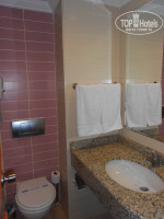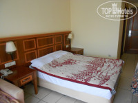 Я приехала в 13 часов, пригласили пообедать, я спросила про браслеты, но мне ответили, что их нет. Разместили сразу после обеда, большой заслуги я в этом не вижу, всё-таки время ближе к стандарту заезда. При выборе отеля я также обратила внимание на заявленную площадь номеров: 23 м. Хоть и заказан был одноместный номер, но разместили меня в 3-местный: 2 спальная кровать и кресло-кровать, т.е. жилая площадь вполне достаточная, чего не сказать о санузле, мне кажется если один сидит на унитазе, а другой откроет дверь, то как раз первому по носу достанется.