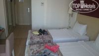 Ездили с Подругой 15 мая2017г.Начну с начала. На ресепшене по русски не понимают и по английски тоже. Так как отель рассчитан на немцев.Их там основной контингент .заселили сразу, так как в отеле народу было мало.Сначало дали номер с одной кроватью, мы попросили с двумя. Дали без проблем. Номера как и везде, ничего нового. Убирались каждый день. Еда..не могу сказать ничего плохого. Для четвёрки очень даже хорошая. И мороженое было, и сладости, и фрукты. Мясо разных сортов. Пицца нескольких видов. Голодным не были. Территория отеля маленькая, не разгуляться. Обслуживание в ресторане и баре нормальное. Но предпочтение немцам. Море минут 10 ходьбы. Но ходит автобус. Пляж большой. Лежаков много. Попить, выпить и закусить на пляже есть. Очень вкусные пекут лепёшки на пляже. Попробуйте обязательно. Анимация.... С этим совсем плохо. Вообще никак. Днём ничего, кроме бучи на пляже. Вечером два раза развлекли.У нас номер выходил на соседний отель, пятёрку,там и смотрели анимацию. А так Вообщем хороший, маленький отельчик. На свою твёрдую 4* тянет.