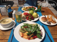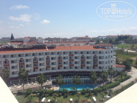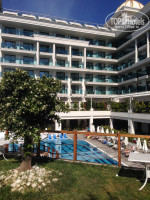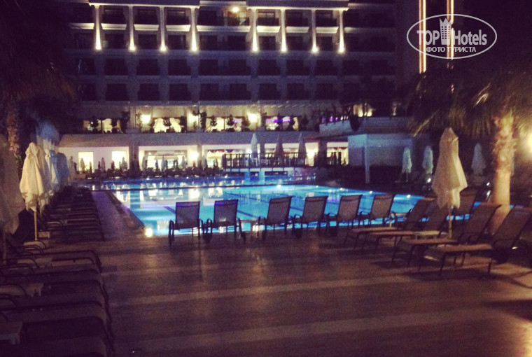 Отдыхали с девушкой в конце Апреля в этом отеле. Отель очень красивый, чистый, комфортабельный. Приехали вечером, заселили быстро и без проблем, номер на 7 этаже, то ли последний или предпоследний, не помню с видом на территорию Отлея с бассейном. Номер хороший, чистый, кровать большая, диванчик, кресло столик, на балконе тоже столик со стульями. Чай, кофе, соки, вода в номере, каждый день меняли. Сейф бесплатный. Телик большой с русскими каналами. Вай фай ток не ловил в номере, ну это наверное из за высоты. Обслуживание персонала хорошее, никаких нареканий. Кормили на убой, мясо, рыба, овощи, фрукты, гарниры мясные и рыбные. Десертов куча - жалко что я не сладкоежка. Днём перекусывать можно блинчиками, лепёшками, гамбургерами, мороженным. Есть возможность посетить ресторан в отеле один раз - ходили в турецкую кухню, мясо объелись пипец!) Все Классно, после отпуска поправился. Пиво хорошее было в отеле, наверное потому что основные гости отеля это немцы. Бармены дружелюбные и веселые, по русски персонал почти не разговаривает. Из алкоголя, как говорил пиво хорошее, виски мне понравилось, вкусное шампанское, вино белое, красное, розовое, коктейли разнообразные, пино калада, голубая лагуна и т.д. Текила убойная. Есть сауна, турецкая банька, закрытый бассейн. Территория отеля небольшая, но очень красивая. Кальян пацаны делают замечательный. Пляж в 5 минутах ходьбы: чистый, выход к морю, хороший, песочек. У моря на баре тоже можно хорошо перекусить и выпить. По линии пляжа хорошая территория можно прогуляться и развеяться. Ходили на экскурсии в Амфитеатр (зашибись), сплавлялись на лодках по речке, было прохладно конечно же - но мы не пожалели, адреналина и положительных эмоций получили кучу. Рядом с отелем много лавок, где можно закупиться всякой утварью - рекомендую кстати гранатовое вино и чай. Брали на прокат трехколёсные электро велики - замечательное средство передвижения!) Словом я рекомендую этот отель, нам все понравилось, замечательно отдохнули!) Но как говорится, по вкусу и цвету карандаши бывают разные)