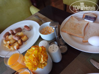 Ресторанчик небольшой, но с обзором на лагуну. В 7 утра на восходе было оч.душевно пить кофе. Но и в 10 утра было неплохо. Мы брали только завтраки, чтобы не привязываться к отелю. 2 вида соков, кофе, чай, вода. 4 вида йогуртов, фруктовый салат, дольки дыни и арбузов, хумус, сыр козий, салаты слегка непривычные для нас, но есть отдельно зелень и овощи, много всяческих заправок и специй, далее улыбчивый юноша с яичницами и омлетом. причем он помнит, кто как любит. Кому с двух сторон обжарить, кому что добавить к яйцам:грибы,овощи,сыр и пр., кому поострее и тп. Это не мне так повезло, я специально за ним посмотрела. Люблю таких профи) Далее горячее:каша, макароны, картошка, пюре, яйца вар., сосиски, лобио, были 1 раз овощи на пару. Да, колбаса и сыр тоже есть.Но я в России-то это не ем, а там- совсем бумага. К кофе-молоко,мед,джем, все виды хлеба, тостер, выпечка. Голодным сложно остаться. В рот и в сумку никто не заглядывает. Из раздражителей - группа китайских товарищей.Но эти везде одинаковы.