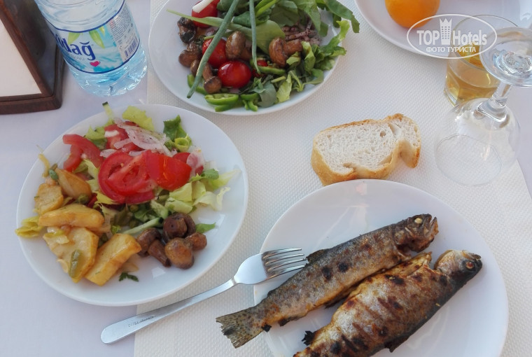 Приехала в отель вечером, разместили моментально, номер с видом на горы и поселок. Номер просторный, чистый. Все исправно. На ужин провожал и показывал территорию, загадочный мужчина кавказской национальности, как его называют в отзывах. От хамама отказалась, никто не убил и не уничтожил морально. Питалась в соседней пятерке. Еда нормальная, да, мяса не было, но все остальное очень даже достойно. Не ешьте полуфабрикаты и впечатление о кухне не будет испорчено. Слава богу арбузы созрели, фрукты и овощи в изобилии. Куры, рыба (форель и скумбрия), печень и еше что то ешьте сколько хотите, куски никто не считал.Сладкое просто супер!!! Респект "сладкому повару".