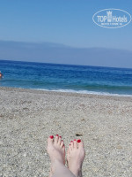 Пляж. Облагородили,лежаков полно, сделали деревянные дорожки, натянули тент. Пляж чистый, заход с пляжа не айс, купалась с понтона. Море супер.