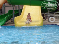 2 комплекса водных горок. Имеются чувствительные стыки, можно поцарапать спину, коврики и круги не предусмотрены.
