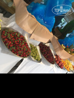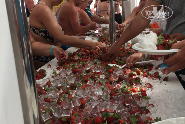 а-ля карт, но я не записывалась в них)) Рыба жаренная целиком (дорада, форель речная), мысли всякое разное (а не только курица), овощи, зелень...Сладости (только пахлавы 4 вида).. Торты,муссы.. пляж просторный,есть бар. Лежаков всем хватает. Бегать утром занимать не надо. На пляже несколько отелей имеют свои зоны, но только в этом постоянно проходили какие тотмероприятия))) например,вчера на полдник было какая то клубничная фейерия!!! Ароматная, спелая,отборная клубника на льду!!! Рядом миски со взбитыми сливками!!! И главное, все всем хватает!!! Хотела отметить фотографа, которого зовут Мемет- это добрейшей души человек!!!! Спасибо, Мемет, за фотографии!!! Есть хамам, сауна, паровая баня, крытый бассейн, тренажёрка... Горки (3 шт) для детей и взрослых!!! А сегодня отмечали День рождения отеля- 4 года! Это просто фантастика!!!! Так все организовать!!! Туристы из соседних отелей стояли за забором и снимали на видео все то, что происходило в нашем отеле!