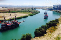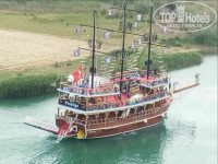 Отдыхали в отеле с 11.05.2017 по 23.05.2017 от туроператора Санмар. Добрались не очень удачно, в Москве задержали рейс на 1,5 часа, прилетев, минут сорок ждали багаж. В аэропорту прилёта никто не встречал, и стойку туроператора возле аэровокзала искали сами. Трансфер до отеля занял три часа, автобус был был полон до отказа и долго петлял по Сиде, развозя туристов по отелям. Наш отель был последним. Прибыли на место около 16-ти часов. Заселили нас сразу, номера дали те, которые мы попросили на 6-ом этаже, с видом на реку, кусочек моря и отель Босфорус.