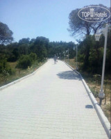 Пляж находится в пяти минутах ходьбы от отеля, через подземный переход и сосновый лесок. Пляж просторный, с большим количеством навесов и новых современных лежаков, на его территории довольно просторное кафе, где подаются всевозможные напитки, горячие и холодные закуски. Пляж и дно песчаные, но кромка прибоя - мелкая рыхлая галька, что создает определенные неудобства при выходе из моря.
