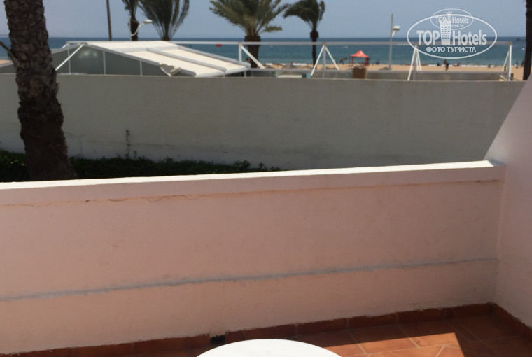 Но самое огромное разочарование, за которое мы ещё и доплатили: это вид с балкона на стену и на крышу соседнего кафе, на которой арабы латали крышу, т.е. никакого океана не было видно и вовсе!