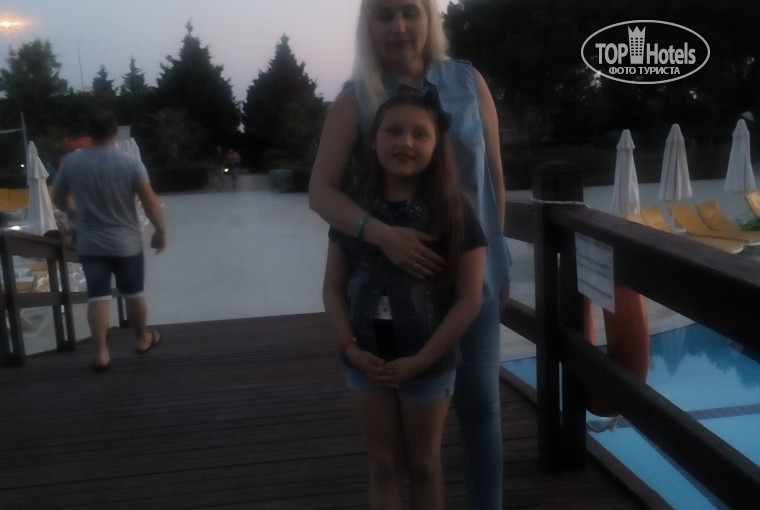 Отдыхала с дочерьми с 25 мая по 3 июня.Отель мне понравился: чисто , уютно и красиво. Хорошее питание , правда мало фруктов и нет арбузов. Чистые светлые номера, нормальная уборка каждый день. Единственное, что мне не понравилось, это какая-то не ухоженность пляжа : крупная галька больно ходить и лежаки под навесом на приличном расстоянии от моря, т.е. по такой гальке из под навеса к морю не находишься, в итоге берешь лежак и сам тащишь его к морю , бичь боя просто нет, я его видела 2 раза вечером, когда он таскал лежаки обратно под навес . Это фактически единственное, что мне не понравилось в отеле . А еще момент, который к отелю отношения не имеет но раздражал очень , это тот момент когда мы братья славяне нажремся и напьемся? До сих пор перед глазами горы оставленные на тарелки еды, что противно, вот например в последний день перед отъездом делали шашлык на улице, я с младшей подошла, вижу очередь ,решили поесть что-нибудь другое , уже под конец ужина подошли к грилю, думаю хоть кусочек ребенку взять, уже конечно закончилось, но сколько на столе лежало этих шашлыков, набранных по 10 -15 палочек и половина осталась на тарелках. В этом отеле не было иностранцев , что очень расслабляет наших людей и их поведение меня просто убивало. Говорю конечно не про всех, большая часть прекрасные люди, а про процентов 15 вечно не довольных не воспитанных товарищей. А что касается отеля, то если надоест находится на территории, то всегда можно съездить в Манавгат 24 км.от отеля, Аланию 46 км ли отеля, Алара Базар 5 км. Так как лира тоже очень упала, то очень выгодно совершать покупки в государственных магазинах Вайкики, Миграсе и т.д. Я много купила хороших вещей достаточно дешево. С 31 мая каждый день стали давать мороженое ванильное, лимонное и шоколадное. Хорошие горки . Очень хорошие массажисты в отеле. Тренажерный зал. Теннисные корты. Вообщем есть чем заняться.