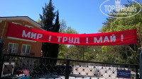 Я очень не люблю слово совок. Однако по отношению к нашему санаторию я придумал свой термин «Милый совок». Напомню, что мы отдыхали в первомайские праздники. Я поместил фотографии транспарантов, которыми были украшены к празднику наш корпус, столовая и въезд на территорию санатория.