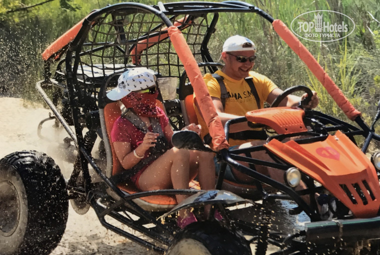 ИЗ ЭКСКУРСИЙ: брали поездку 3 в 1 (Рафтинг, багги,купание в каньоне горной реки на надувных горках) обошлось на четверых 195$