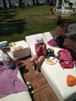 1. Анимация. Начну именно с нее. Ребята молодцы. Начиная работу с 10 утра, они шевелили народ до 23 часов. При этом через день возили молодёжь на выездные дискотеки. Читал отзывы людей что анимация плохая. Сразу могу вам сказать это пишут люди, которые не умеют веселится. Главный аниматор Омар создан для того чтобы творить шоу. А мы отдыхающие глина в его руках, из которой он лепит звезд шоу программ. Участвовал практически во всем с дочкой. Получили большое количество призов: медаль отеля, красивую футболку отеля, бутылку вина (обычного), комплект дисков с музыкой отеля. А теперь о самих развлечениях: утром начинается с зарядки, потом дартс, бочча, водное поло, для девочек что-то в бассейне, после проходит игра около бассейна и людей отпускают на обед. После обеда снова игры (те же самые) плюс простая, но смешная игра после водного пола на полянке, клубный танец и прыжок всей толпой в бассейн, а после танцы живота и снова что-то для девочек. Вечером в 21 час детская дискотека, игра «Кола-Фанта», и представление для взрослых. Если участвовать хотя бы в половине конкурсов, то вы будете весь день заняты, веселы и подвижны. Лично я участвовал в водном поло, во всех играх около бассейна и на полянке, вечером рубился в «Кола-Фанта» и смотрел представления. Моя дочь любила быть в детском клубе (ей очень нравились аниматоры из клуба, особенно Екатерина) где рисовали цветным песком (5 долларов), разукрашивали лица (бесплатно), потом дочь плясала на мини диско и так же рубилась в «Кола-Фанта». Потом смотрела представление со мной. Все конкурсы были интересные, совсем немного пошленькие (но подавались с таким юмором что людям нравилось), представления были следующие: акробаты, танцы живота, мистер отель, мисс отель, пара отеля, лотерея – бинго- лото, командное угадывание саунд треков из фильмов, и fire show. Самое впечатлительное это fire show – аниматоры его делали сами. Очень было захватывающее. После шоу через день до 2 часов ночи была дискотека в отеле, а через день аниматоры вывозили желающих на дискотеки в разные города.