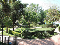 А мы дальше перемещаемся по территории отеля и видим зелёные лужайки, на которых за красивыми деревьями разместились волейбольная площадка, мини-гольф, дорога к морю, обрамлённая строгим рядом слоновьих пальм.