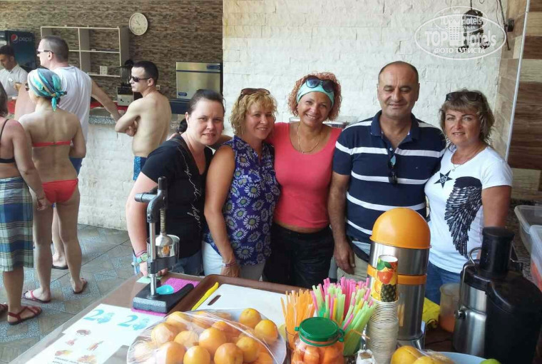 На территории отеля вас развлекают с утра до ночи АНИМАТОРЫ. Это слаженная команда во главе с джигитом из Грузии НИКО и с русской душой. Каждый вечер он устраивает шоу и удивляет своим искусством и мастерством! Все отдыхающие участвуют, никто не скучает!!!Обязательно тем, кто приехал отдыхать, а не спать рекомендую съездить на дискотеку в Аланию!!!Зарядитесь музыкой!!! Ещё классная дискотека под руководством НИКО проходит на территории отеля после анимационного шоу. Каждое утро после завтрака, шли купаться в море, где есть команда спасателей Малибу, которые предлагают экстремальные прогулки по морю. Инструктора зовут АСЛАН, который всё вам расскажет и поможет выбрать как получить порцию адреналина. Рядом, наверху у бассейна, в баре ОКАН и АЛЛА приготовят вам сок, который вас восстановит и подзарядит. Они посоветуют вам райское местечко для отдыха , в котором я отмечала свой ДЕНЬ РОЖДЕНИЯ 4 июня. Всё, что было приготовлено- вкуснее не бывает. Салат по фирменному рецепту хозяев этого ресторана, котлеты из баранины с говядиной, ну и картошечка, как из детства. В этот день я ходила в парикмахерскую на территории отеля , в которой работают 2 девушки- профессионалы своего дела. Прическу, которую делают 1.5 часа мастер ГУЛИНЕ сделала мне за 20 минут. Они могут сделать из волос любую причёску по вашему желанию. Да чуть не забыла написать про аниматора ЛЕНУ, которая любит всех детишек и проводит с ними занятия по рукоделию так, что дети ведут себя с ней как завороженные!!!