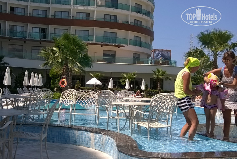 Питание в отеле и барах))).Каждый раз одно и тоже)))Какая бы страна или какой бы отель не был всегда находится тот, которому мало и невкусно))) Отсутствуют каши и куриного супчика для деток-вот это действительно необходимо ввести в меню, так как в отели очень много туристов с маленькими ребятками. Всего два раза при нас была рисовая каша и овсянка. В остальном всё как всегда. По утрам как всегда омлеты, блины, оладьи, йогурты, хлопья и так далее. Как в любом другом отеле))). Рыба за две недели прибывания была очень вкусная, мясо было разное (шашлык, на вертеле, на гриле, тушенное и т.д). Фрукты ( а мы под этим понимаем только вкусные фрукты, а не яблоки и апельсины:)))) были, не каждый день, но давали арбузы, дыни и абрикосы с нектаринами (последние безвкусные в силу сезона,а не отеля:)).Мороженное тоннами вечером и днём! Сладости и т.п как всегда в Турции:).