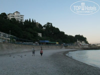 Пляж. Пожалуй, самое слабое звено. Галечный, дно такое же. Если массаж ступней об острые камни входит в ваши планы, то вам понравится. Обзор моря здесь слабенький, поскольку с обеих сторон какие-то непонятные конструкции, местами необустроенный никак. Одна галька и больше ничего. Местами есть лежаки, сколоченные из досок. Есть и традиционные лежаки, но также не везде. Есть и мягкие качели для групповой релаксации.