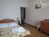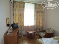 В остальном всё хорошо. Изнутри корпус отделан очень хорошо, хотя и чувствуется простота 20-го века. Номера простые и уютные. Есть маленький холодильник, кондиционер, фен (спрятан в верхний ящик стола), удобная мебель, чайник. Санузел удобный.