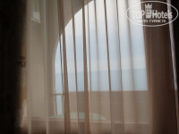 Вид из номера шикарный, если он на море. Поскольку санаторий расположен на выпуклой части побережья, то обзор моря достигает примерно 150 градусов, на фоне зелени и другого хоть и ободранного корпуса выглядит очень заманчиво.