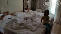 По приезду разместили быстро, номера приличные, уборка на 4 (пол весь в разводах после мытья). Слышимость в номерах отличная - музыка и мечеть мешали засыпать детям, потом привыкли уже (пробовали менять номер, но все верно тут уже писали - на ресепшен только одна девушка по русски понимает(Гульнар), проблему решить не смогла отель был весь заполнен, а на др день ее не было и на ресепшене делали вид, что не понимают нас). Минибар пополняли ежедневно водой в 1.5л бутылке, и маленькими бутылками с минеральной водой. Сейф платный, 3$ в день. На ресепшен бесплатного сейфа также нет.