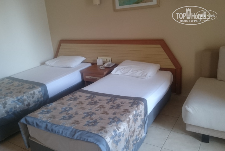 О недостатках. У нас был номер на троих (две кровати и диван), но третьего комплекта белья не было. Пришлось дважды ходить на ресепшн и дважды звонить. Сначала принесли только простыню и полотенце, и только после повторных объяснений принесли подушку и покрывало. Но, скорее всего, это было недопонимание между работником ресепшн и другим сотрудником, всё это было быстро улажено. Ещё один недостаток - это морское дно. На дне валуны, довольно близко к берегу. Когда море спокойное, их видно - вода над ними более тёмная. У них искусственное происхождение. "Крутое обрывистое дно в середине прошлого века пытались сделать пологим, укрепить бетонными опорами и стяжками. Но своенравное море показало, кто на самом деле хозяин, и теперь кое-где проход в воду затруднен такими отшлифованными каменными наплывами. Во многих местах они выступают над водой ступенями или валунами" (http://poasii.ru/city/poselok-konacly-turtciia-otdykh-dostoprimechatelnosti-foto-video). Говорят, если пройти дальше по пляжу налево, там дно лучше. Но в принципе, эти валуны не идут сплошняком, вполне можно купаться, просто надо быть внимательным. Само дно песчаное и мелкогалечное.