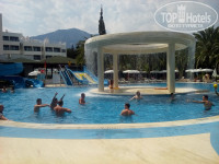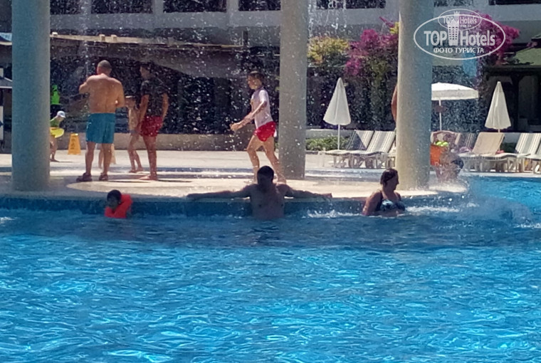 На активной части расположен бар, сцена, открытая веранда со столами. Недалеко за горкой (на переходе во второе здание отеля) готовят вкусную фри, бургеры и кукурузу. Дети туда сами ходили, поэтому голодными никогда не были. Днем отель угощает мороженым! Не бегите за ним сразу!! Через полчаса после начала, большой очереди уже не будет. Под конец мальчик стоял за холодильником один и скучал. Все боялись, что не достанется и сразу ломились) мы спокойно брали чуть позже.