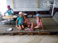 ПАССИВНАЯ часть – это большой бассейн с пресной водой. Там всегда меньше народу и более спокойно. Под навесом расположен бар и столики. Мало кто знает, но именно за баром милая женщина печет СУПЕР лепешки… сидит на топчанах и прямо тут печет самые вкусные лепешки с разной начинкой. Дети любили присесть рядом и смотреть, а она угощала их своими «пирогами». Именно эта женщина готовит вкуснейшие омлеты и блинчики на завтрак.