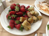 Питание. Тоже много писали. Я присоединюсь к отзывам про пережаренное (пересушенное) мясо и рыбу, очереди за яичницей. Так как мы были в отеле в самом начале сезона, то, соответственно из фруктов была клубника (в изобилии: хочешь тарелками бери, хочешь корзинками), яблоки стандарт (типа голден, таких и дома поедим), апельсинами тоже не удивить. Ближе к концу нашего отдыха появились арбузы и дыни (незрелые). Понравилась необычная (стильная) сервировка например фруктов (баночки, корзинки), креветки в рюмочках с соусом, смузи и проч. Элемент лакшери. Спасибо за обилие свежих овощей и зелени. Про переваренные раки и креветки тоже писали, присоединяюсь. Очереди за роллами тоже были. Неудобное расположение самих блюд и столиков тоже кто-то упоминал. Мы же все любим ни один раз подойти к "раздаче", а если заберешься в конец зала, то особо не находишься. И снова удивляют наши соотечественники. Лично наблюдала, как один мужчина отрезал от каждого торта по кусочку, нюхал, и клал обратно... Тоже самое кстати делали и турецкие женщины. А так голодными не останетесь, по-любому что-нибудь съестное для себя найдете. В кофейных аппаратах не было горячего шоколада, а сам кофе странноватый какой-то.